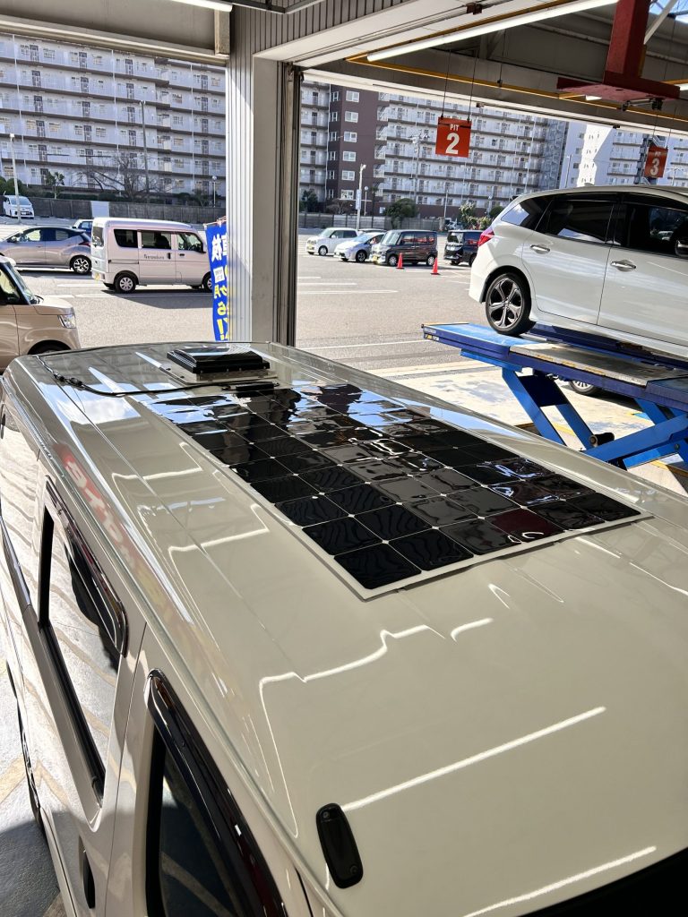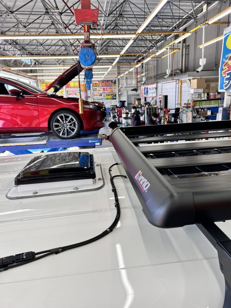 天井にソーラーの備え付けがありましたが上から被せる感じのお取付けで実施させて頂きました。