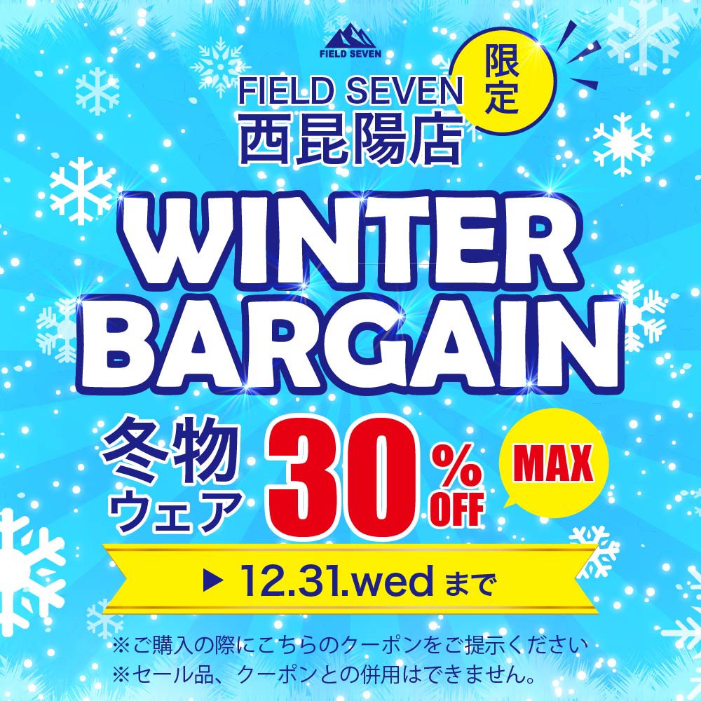 2025.12.18 【 イベント 】西昆陽店限定 ”ウィンターバーゲン”開催‼ 《2025.12.19(金) ~ 12.31(水) 》 FIELDSEVEN西昆陽店では2025年最後の《ウィンターバーゲン》を開催いたします! 冬物ウェアが20%~30%OFFと大変お買い得! 【同時開催】 西昆陽店では ハイエースのキャンピングカー [展示デモ車両]を特別価格にて販売しております。 ※更に1月12日までのご成約でオプション10万円分のプレゼントもございます。 お買い物の合間にゆったりと過ごせるキャンピングカーを体感してみては如何でしょうか? 皆様のご来店お待ちしています。