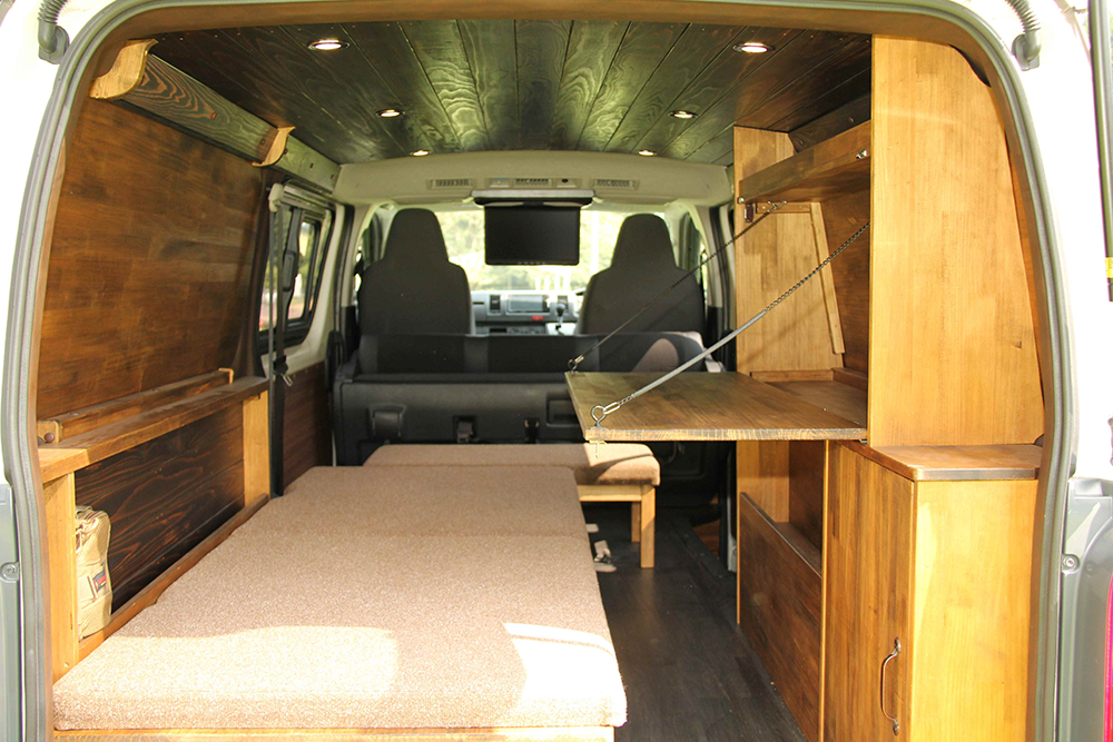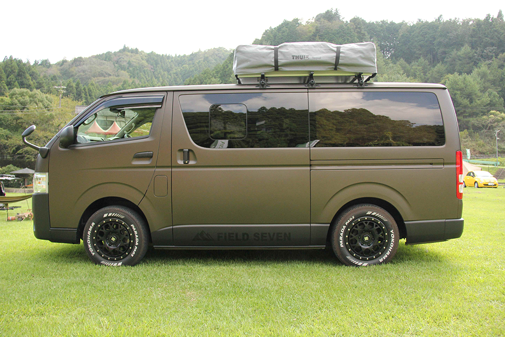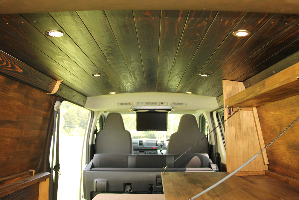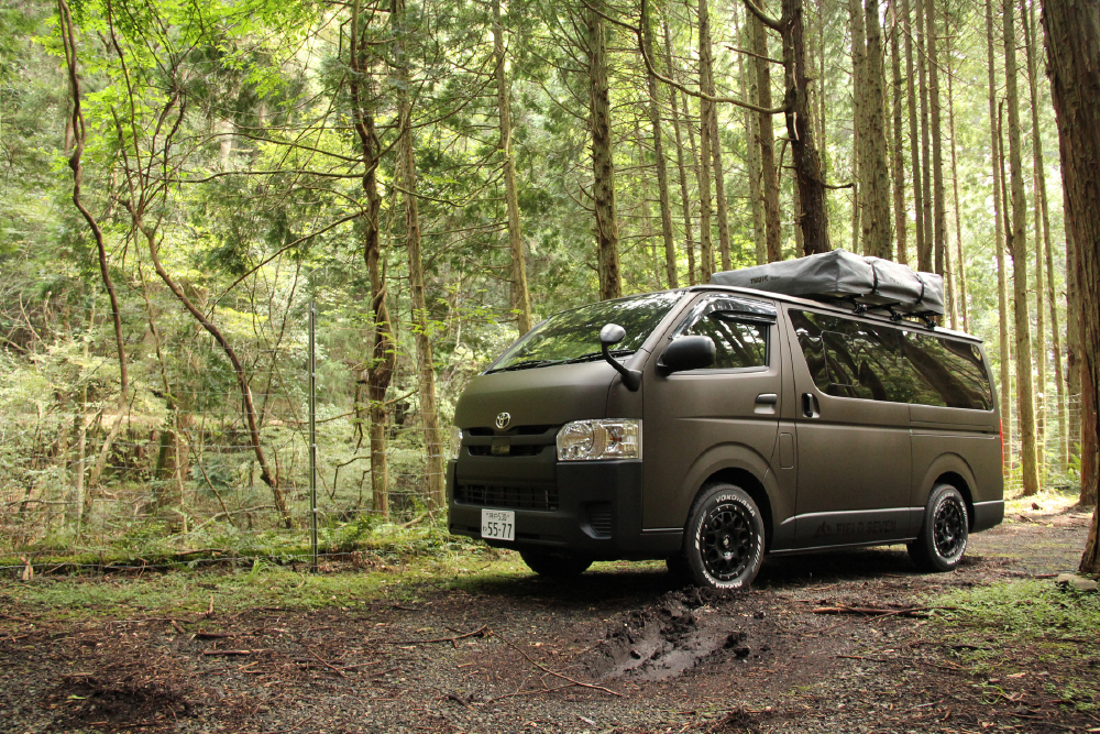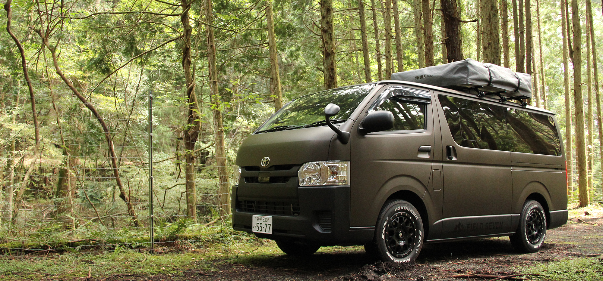 FIELD SEVEN でレンタルしている車両は、トヨタハイエースバンをウッドでコンバージョンしています。