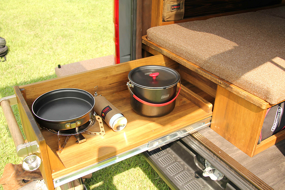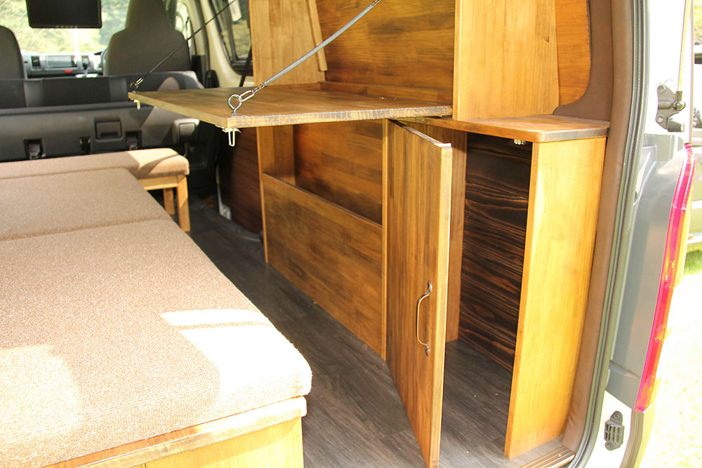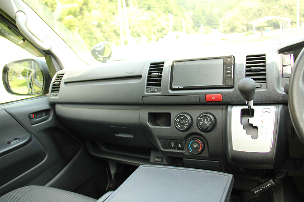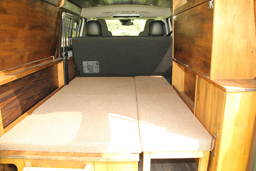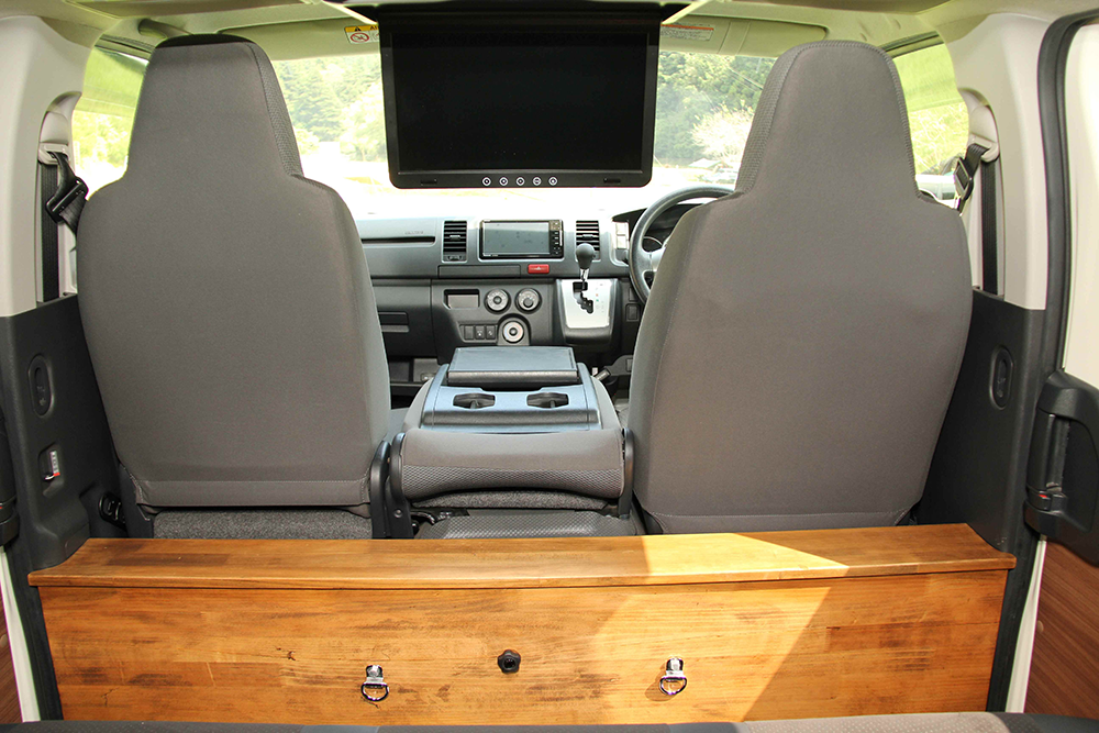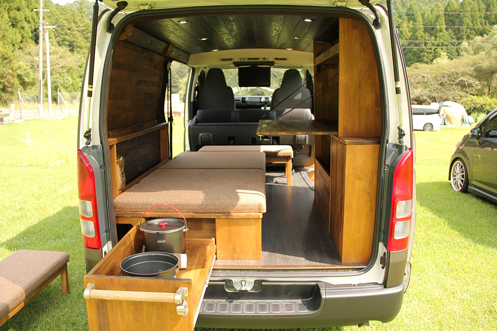 FIELD SEVEN でレンタルしている車両は、トヨタハイエースバンをウッドでコンバージョンしています。